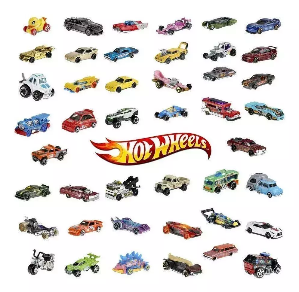 DESCRIÇÃO GERAL Hot Wheels - 10 Carrinhos Hot Wheels Sortidos Sem duplicidade - ORIGINAIS MATTEL A linha básica da Hot Wheels é produzida na escala de 1:64, cerca de 7 a 8 cm de comprimento cada. Possuem a carroceria de metal, podendo conter detalhes em plástico. A carroceria é fixa na base, sendo assim extremamente resistente. As rodas são de plástico e têm movimento livre. Produzidos pela Mattel, um dos maiores fabricantes de brinquedos do mundo, são lançados de 200 a 300 novos carrinhos todos os anos, podendo ser modelos totalmente diferentes ou variações de cores de miniaturas já fabricadas.